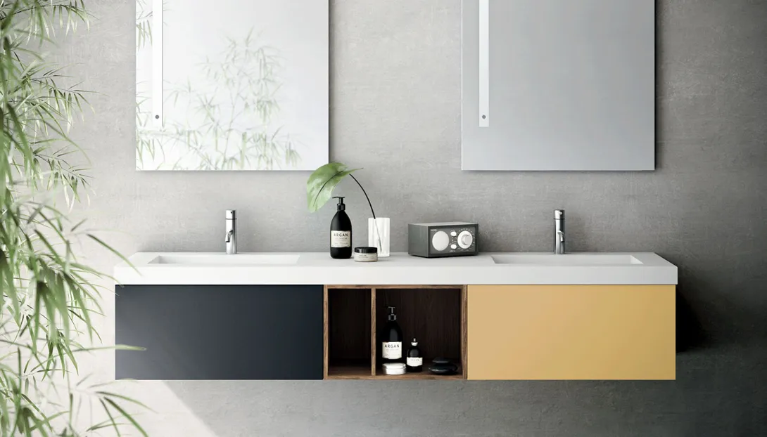 • Kombinierbar mit integrierten Becken, Aufsatzwaschbecken, offenen Elementen und Unterschränken